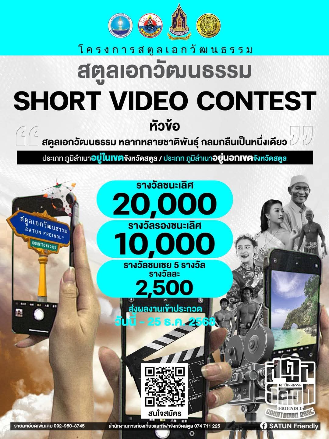 โครงการ สตูลเอกวัฒนธรรม ขอเชิญชวนผู้สนใจเข้าร่วมประกวดคลิปวิดีโอสั้น หัวข้อ “สตูลเอกวัฒนธรรม หลากหลายชาติพันธุ์ กลมกลืนเป็นหนึ่งเดียว” ชิงรางวัลเงินสด พร้อมเกียรติบัตร