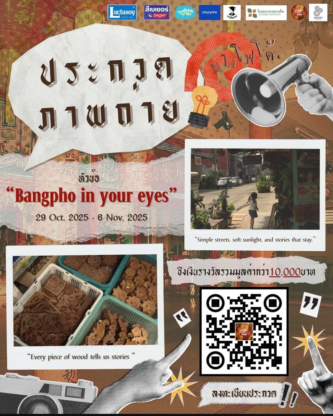 bangphoto.official ขอเชิญชวนผู้สนใจ ส่งผลงานเข้าร่วมการประกวดภาพถ่าย “Bangphoto: วิจิตรศิลป์ถิ่นไม้งาม เลื่องลือนามประชานฤมิตร” ภายใต้หัวข้อ “Bangpho in your eyes” สะท้อนภาพ “ประชาคม ประชานฤมิตร” ในมุมมองของคุณ ชิงเงินรางวัลมูลค่ารวม 10,000 บาท พร้อมของรางวัลและเกียรติบัตร