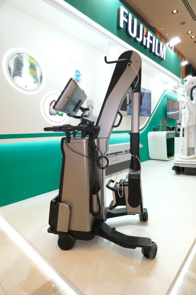 “อีกหนึ่งโซลูชันที่เปิดตัวในงานคือ FDR Go iQ เครื่องเอกซเรย์เคลื่อนที่ ซึ่งออกแบบมาสำหรับสถานการณ์ฉุกเฉินและสภาพแวดล้อมที่มีทรัพยากรจำกัด มาพร้อมกำลังสูง ช่วยให้สามารถทำการตรวจเอกซเรย์ได้ทุกประเภทโดยไม่ต้องเคลื่อนย้ายผู้ป่วยไปยังห้องเอกซเรย์ ทั้งยังมี D-EVO III แผ่นรับภาพเอกซเรย์ดิจิทัลที่ได้มาตรฐานกันฝุ่นและกันน้ำระดับ IP56 พร้อมการเคลือบสารต้านเชื้อแบคทีเรียสำหรับสภาพแวดล้อมที่ท้าทายในสถานพยาบาล นอกจากนี้ กล้อง 3D และซอฟต์แวร์ Position Navi ที่ขับเคลื่อนด้วย AI ยังช่วยลดความซับซ้อนในการจัดท่าและยกระดับคุณภาพของภาพ นับเป็นการช่วยลดภาระบุคลากร ในสถานการณ์ฉุกเฉินหรือหอผู้ป่วยวิกฤต ช่วยร่นระยะเวลาการวินิจฉัยและสนับสนุนการตัดสินใจทางการแพทย์ได้อย่างทันท่วงที”