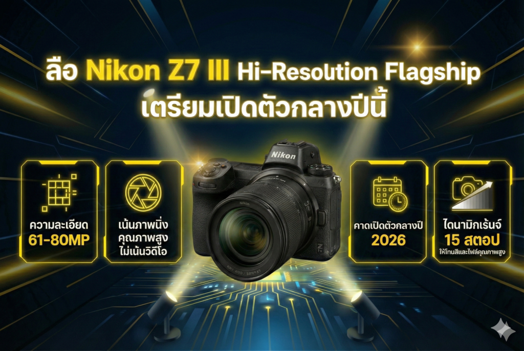 Nikon Z7 III กล้องฟูลเฟรมที่ลือกันมานาน และเงียบหายไปนานมาก อัพเดทล่าสุดคาดว่าน่าจะเปิดตัวภายในกลางปีนึ้ (2026) โดยข่าวลือระบุชัดว่าจะเป็นกล้องฟูลเฟรมความละเอียดสูงระหว่าง 61MP ถึง 80MP ที่ไม่เน้นฟีเจอร์วิดีโอ