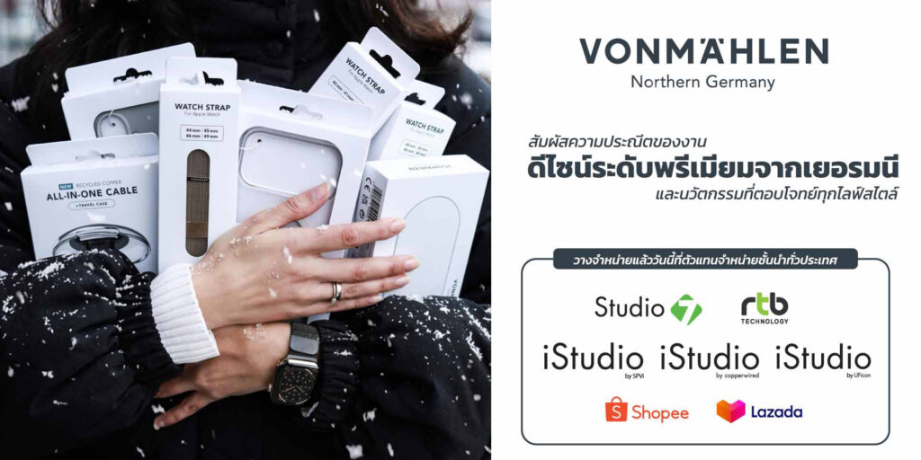 ผลิตภัณฑ์ของ VONMÄHLEN (VONMAEHLEN) วางจำหน่ายแล้ววันนี้ผ่านร้านค้าชั้นนำ อาทิ iStudio by Copperwired, iStudio by SPVi, iStudio 7 และ iStudio by Uficon รวมถึงช่องทางออนไลน์แพลตฟอร์ม Shopee และ Lazada