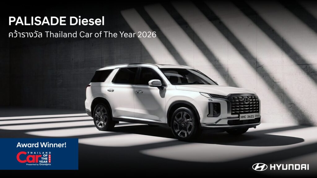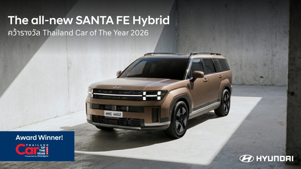 กรุงเทพฯ 9 มีนาคม 2569 – บริษัท ฮุนได โมบิลิตี้ (ประเทศไทย) จำกัด ประกาศความสำเร็จรับต้นปี 2569 หลังคว้า 2 รางวัลอันทรงเกียรติจากเวทีประกาศรางวัลรถยอดเยี่ยมแห่งปี “CAR & BIKE OF THE YEAR 2026” จัดโดย บริษัท กรังด์ปรีซ์ อินเตอร์เนชั่นแนล จำกัด (มหาชน) สะท้อนความแข็งแกร่งของไลน์อัป SUV โดย Hyundai all-new SANTA FE Hybrid คว้ารางวัล BEST HYBRID MID-SIZE SUV UNDER 1,800 c.c. ขณะที่ Hyundai PALISADE Diesel คว้ารางวัล BEST DIESEL SUV UNDER 2,200 c.c. ตอกย้ำความแข็งแกร่งของแบรนด์ที่พร้อมมอบผลิตภัณฑ์ที่มีคุณภาพยอดเยี่ยมแก่ผู้บริโภคชาวไทย