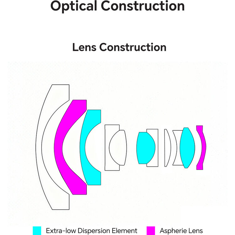 • โครงสร้างชิ้นเลนส์ 11 ชิ้นจัดเป็น 8 กลุ่ม (3 Extra-low Dispersion, 2 aspherical​)​