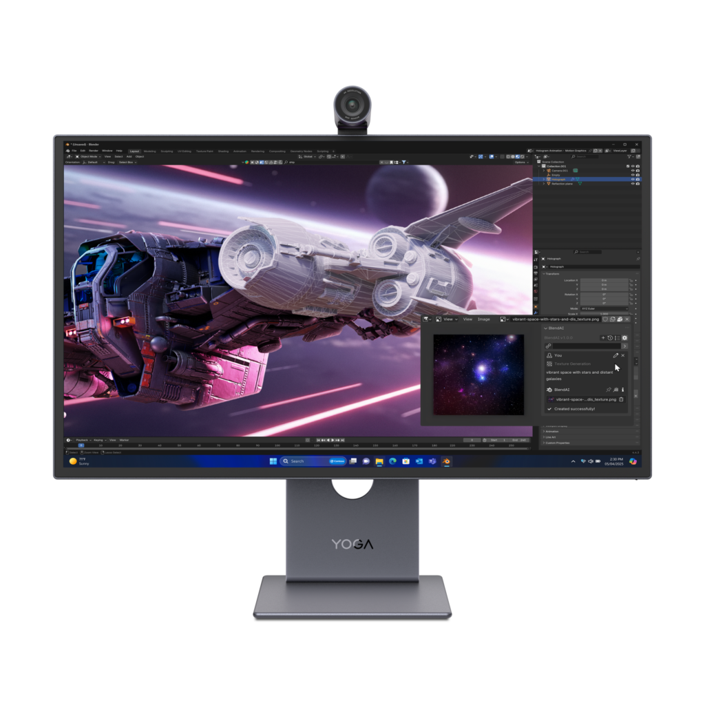 สำหรับสายงานครีเอทีฟที่อาจต้องการเปลี่ยนการใช้งานจากหน้าจอบนแล็ปท็อปไปที่โต๊ะทำงานก็สามารถจับคู่แล็ปท็อป Yoga Pro 9i Aura Edition เข้ากับจอมอนิเตอร์ Yoga Pro 27UD-10 ที่ออกแบบมาเพื่อการทำงานร่วมกันทั้งในเรื่องของสีสันและการใช้งานหลายหน้าจอ