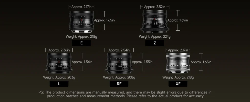 Brightin Star 35mm f/1.4 เลนส์มือหมุนสไตล์เรโทร ออกแบบกระบอกเลนส์รูปร่างรูปทรงแบบย้อนยุค ขนาดเล็ก น้ำหนักเบาเพียง 218 กรัม โครงสร้างชิ้นเลนส์ 7 ชิ้นจัดเป็น 6 กลุ่มมีชิ้นเลนส์พิเศษ LD และ High Reflaction รูรับแสงสว่าง f/1.4 ให้โบก้ที่นุ่มนวล เป็นธรรมชาติ วงแหวนปรับรูรับแสงที่กระบอกเลนส์มีสวิทช์ปรับปิดเสียงสำหรับรองรับงานวิดีโอ ระยะโฟกัสใกล้สุด 0.3 เมตร มีให้เลือก 2 เวอร์ชั่นทั้งสี Classic Black และ Retro Silver ราคา $159.99