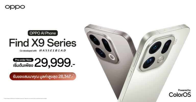 อ่านเพิ่ม »เปิดตัว OPPO Find X9 Series สมาร์ตโฟน “ซูมดีทุกคอนเสิร์ต” ด้วยกล้อง 200MP Hasselblad Telephoto ซูมไกล 120x Super Zoom และวิดีโอ 4K 120fps ในราคาเริ่มต้น 29,999 บาท