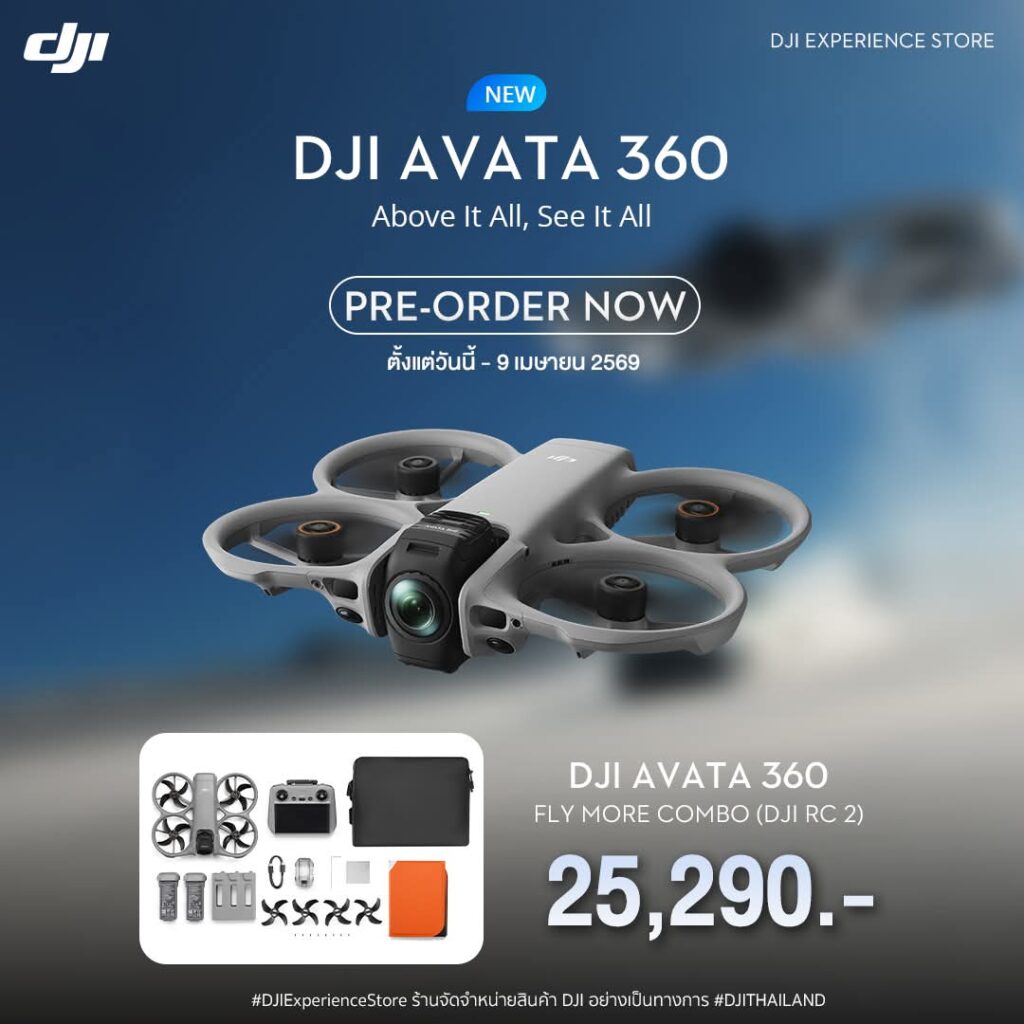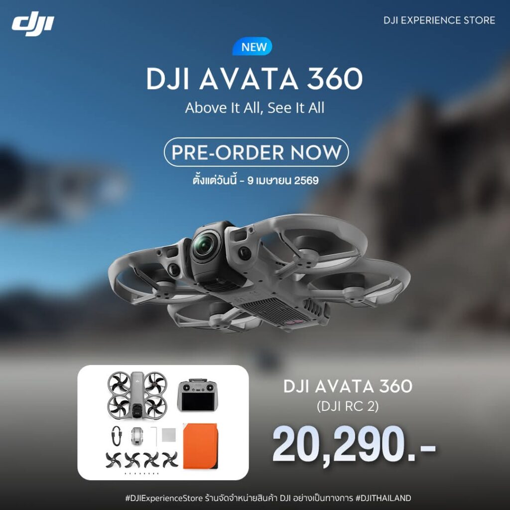 DJI Avata 360 พร้อม พร้อมให้สั่ง Pre-order ที่ DJI Expereince Store และพาร์ทเนอร์ค้าปลีกที่ได้รับอนุญาต ตั้งแต่วันนี้เป็นต้นไป แล้วจะเริ่มวางขายจริงวันที่ 9 เมษายน 2569