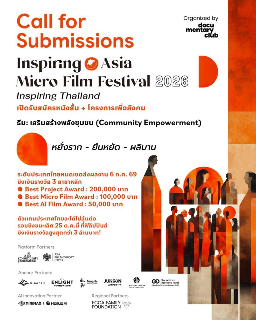 Inspiring Asia Micro Film Festival 2026 – Inspiring Thailand เปิดรับผลงาน “หนังสั้น + โครงการเพื่อสังคม” ในธีม “เสริมสร้างพลังชุมชน”