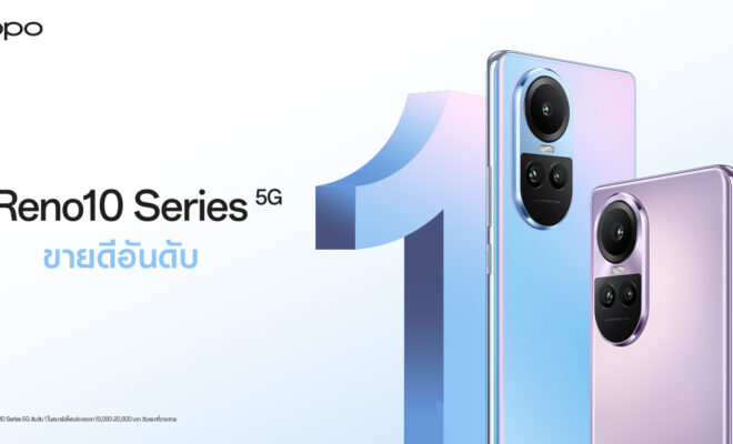เปิดตัวแรง ยอดขายพุ่งกระฉูด! OPPO Reno10 Series 5G สมาร์ตโฟน The Portrait Expert ที่มาพร้อมกับกล้อง Telephoto Portrait Camera กล้องพอร์ตเทรตซูมได้เป็นครั้งแรกในสมาร์ตโฟนราคาระดับกลาง ให้ภาพพอร์ตเทรตที่คมชัดไปอีกขั้น โดยวางจำหน่ายใน 3 รุ่นได้แก่ OPPO Reno10 5G ราคา 13,990 บาท, OPPO Reno10 Pro 5G ราคา 17,990 บาท และ OPPO Reno10 Pro+ 5G ราคา 27,990 บาท