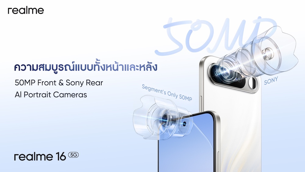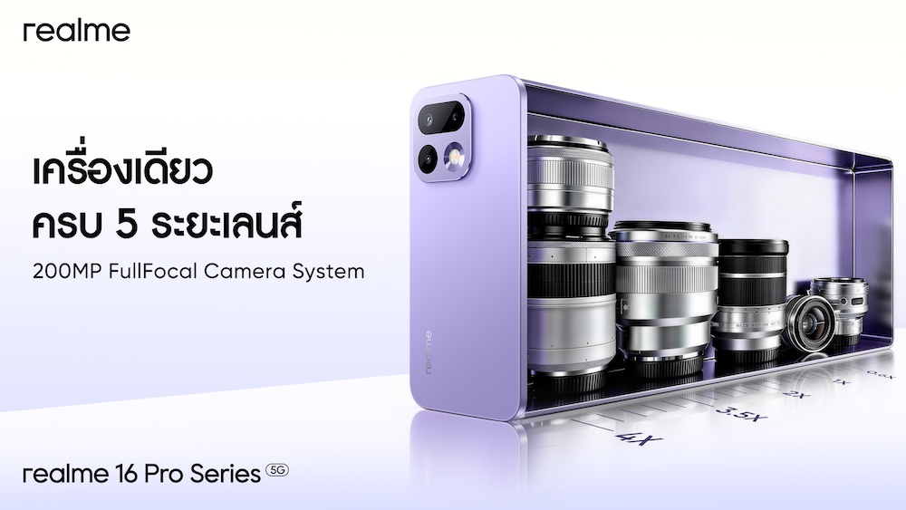 “realme 16 Series 5G” เปิดยุคใหม่แห่งการถ่ายพอร์ตเทรต! ชูกล้อง 200MP LumaColor Portrait Master “หนึ่งเดียวในเซกเมนต์” พร้อมสัมผัสความงามของ Urban Wild Design สไตล์ “นาโอโตะ ฟุคาซาวะ” ครั้งแรกใน Number Series ในราคาเริ่มต้นเพียง 11,999 บาท