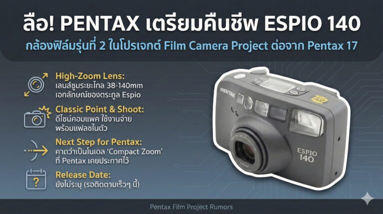 NEWS ลือ Pentax เตรียมปล่อย Espio 140 กล้องฟิล์มรุ่นที่สองต่อจาก Pentax 17 อ่านเพิ่ม » Lekbluearrow December 11, 2025 11:25 am