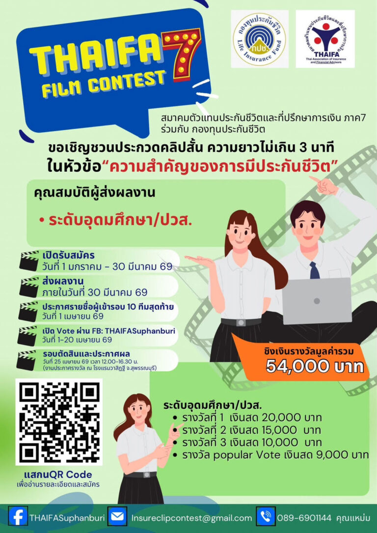 NEWS โครงการประกวดคลิปสั้น “ความสำคัญ ของการมีประกันชีวิต” อ่านเพิ่ม » Lekbluearrow March 10, 2026 9:15 am