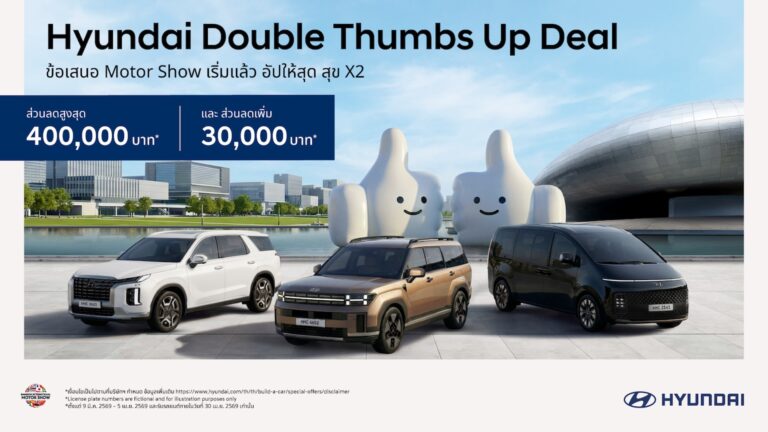 NEWS ฮุนได ลุยมอเตอร์โชว์! เสิร์ฟแคมเปญ “Hyundai Double Thumbs Up Deal”ดีลจัดหนัก คุ้มสองเด้ง ส่วนลดสูงสุด 400,000 บาท แถมลดเพิ่ม 30,000 บาท อ่านเพิ่ม » Lekbluearrow March 12, 2026 12:43 pm
