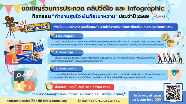 NEWS ประกวดคลิปวีดีโอและ Infographic “ทำงานสุขใจ พันภัยเบาหวาน” อ่านเพิ่ม » Lekbluearrow December 10, 2025 4:22 pm