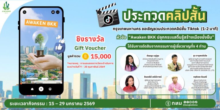 NEWS ประกวดคลิปสั้นในหัวข้อ “Awaken BKK ปลุกกระแสตื่นรู้สร้างเมืองยั่งยืน” อ่านเพิ่ม » Lekbluearrow January 20, 2026 6:19 am