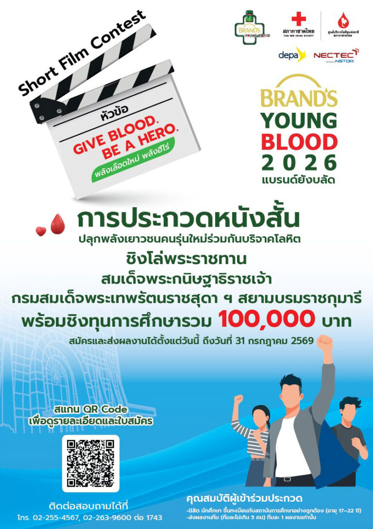 NEWS การประกวดหนังสั้น BRAND’S Young Blood Short Film Contest หัวข้อ “Give Blood. Be A Hero. พลังเลือดใหม่ พลังฮีโร่” อ่านเพิ่ม » Lekbluearrow March 16, 2026 10:58 pm
