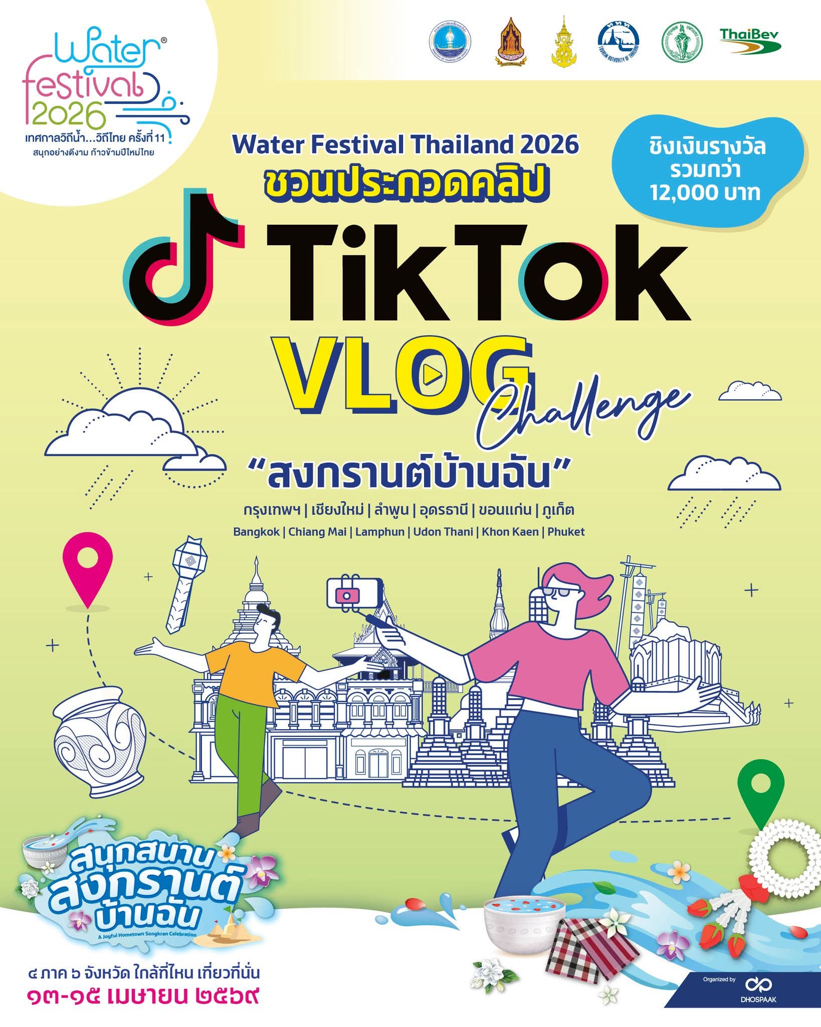 Water Festival 2026 VLOG Challenge “สงกรานต์บ้านฉัน” กรุงเทพฯ | เชียงใหม่ | ลำพูน | อุดรธานี | ขอนแก่น | ภูเก็ต ชวนทุกคนมาถ่าย Vlog 1 วัน พาเที่ยวงาน Water Festival ในสไตล์ของคุณเอง ลุ้นเงินรางวัลรวมกว่า 12,000 บาท